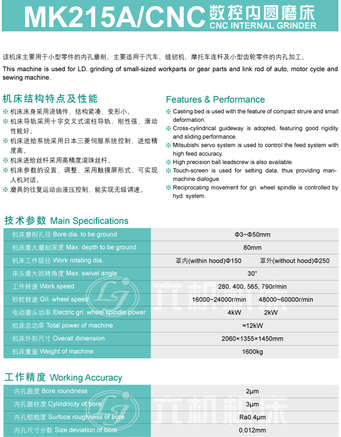 MK215A/CNC 数控内圆磨床